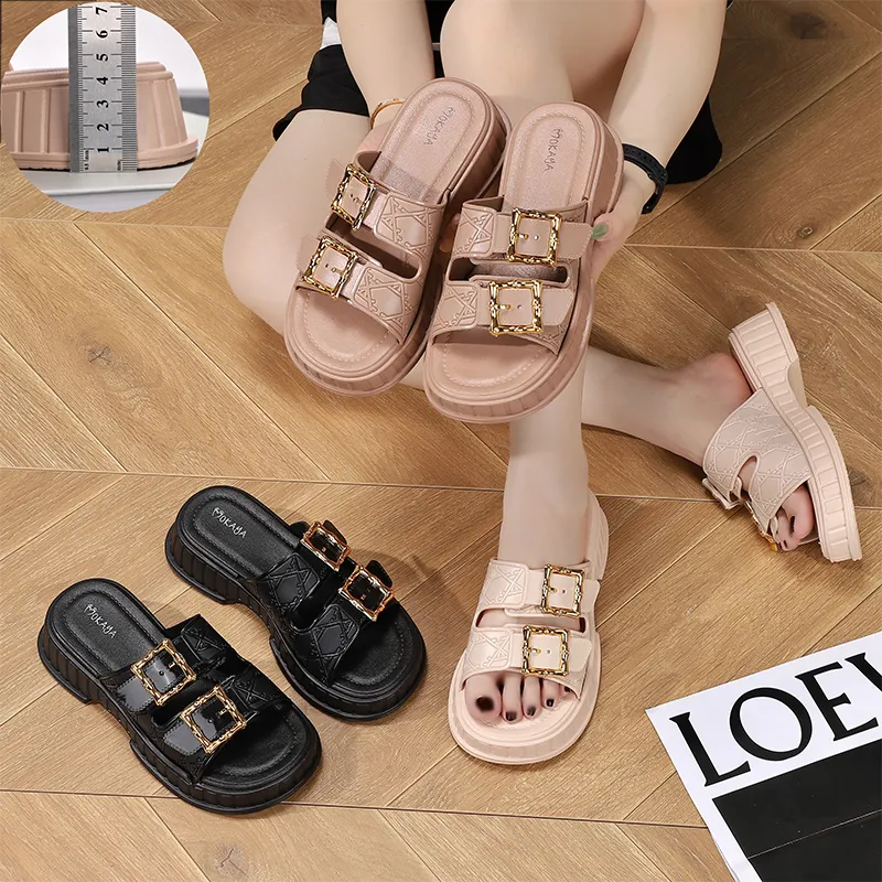 Eye-catching Glamorous Appearance**: Featuring rhinestone square buckles and an embossed design, it comes in multiple colors such as nude pink, black, and light brown. It’s glamorous with a retro touch, easily creating an eye-catching look and serving as a standout piece for fashionistas. Platform Design for Height and Leg-Lengthening**: The platform design (the thickness is visible in the detail image) not only adds height and lengthens legs but also provides comfortable cushioning, making you feel lighter when walking. Comfortable Wearing Experience**: The shoe shape fits the foot perfectly, without pinching or rubbing. Even for long-term wear, it remains comfortable. Practical & Versatile Scenarios**: It can be easily paired for daily outings, dating, casual shopping, etc. It’s a glamorous item to elevate the sophistication of your summer outfits.