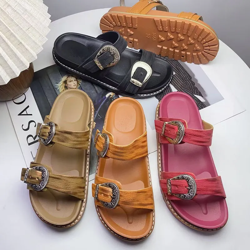 【Monogram Double-Buckle Slides | Weld "Luxury Recognition" and "Cloud-Like Comfort" to Your Feet】 Monogram Embossing + Metallic Buckles, Instant Fashion Icon** Classic monogram embossing replicates high-luxury design language, while metallic buckles add a refined touch. Light blue exudes freshness, off-white radiates sophistication, and brown tones carry retro charm. Pair with shorts to channel street style or long skirts for vintage elegance—you’ll stand out in the fashion scene! Thick, Springy Sole Technology, No Foot Fatigue Even After a Full Day of Walking** The thickened sole feels like "sinking into a cloud," with proper arch support to keep feet comfortable during long walks. The non-slip outsole grips firmly, ensuring stable steps on rainy days or at exhibitions. It’s both a "lazy person’s savior" for daily commutes and a "show-stopping style piece" for outings! Multi-Color Options for All-Season Styles** Light blue complements fresh aesthetics, off-white nails minimalist style, brown tones own retro vibes... One pair unlocks countless looks—this is the "luxury dupe with prestige" your shoe rack has been missing!